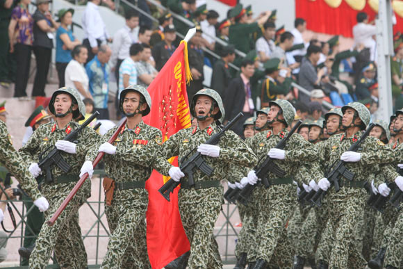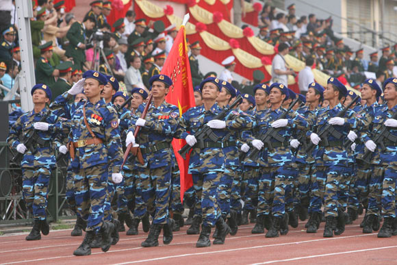 Đoàn bộ đội bộ binh đang tiến qua lễ đài