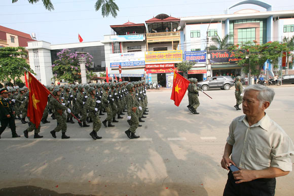 Phía sau đoàn quân kỳ là bộ đội bộ binh