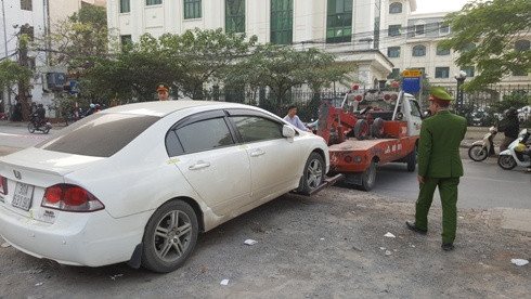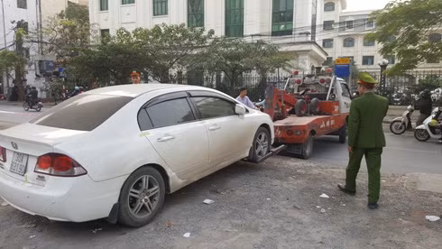 Một chiếc xe bị niêm phong, đưa về nơi tạm giữ