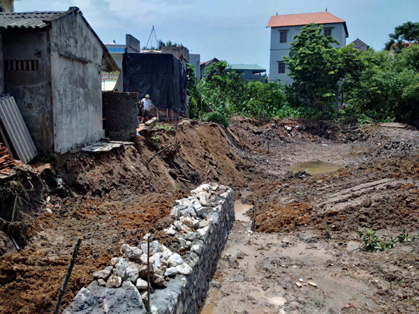 Như ANTĐ đưa tin, ngày 7-8, khi Công ty TNHH Hồng Trường (trụ sở tại 619 Nguyễn Văn Linh, quận Long Biên, Hà Nội) là đơn vị thi công nạo vét và kè ao 6 sào (tại xóm Bộ, thôn Phù Đổng 2, xã Phù Đổng) thì xảy ra sự cố sụt, lún tường rào, sân của một số hộ dân sống bên cạnh.