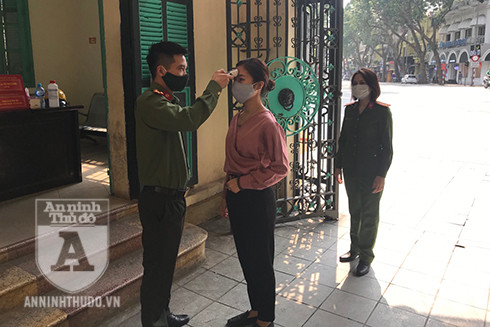 Tại Công an quận Hoàn Kiếm, những ngày qua, mỗi cán bộ chiến sĩ đến đơn vị làm việc, công dân đến liên hệ công tác hoặc thực hiện các thủ tục hành chính đều được yêu cầu kiểm tra thân nhiệt và sát khuẩn. Tại hành lang của đơn vị cũng đều bố trí các lọ dung dịch rửa tay, sát khuẩn, thuận tiện cho các cán bộ chiến sĩ sử dụng.