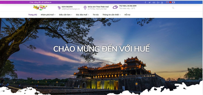 Giao diện của Cổng thông tin với 3 ngôn ngữ: tiếng Việt, tiếng Anh và tiếng Nhật với những thông tin về ngành du lịch của tỉnh như các sự kiện sắp diễn ra, những hoạt động du lịch đặc sắc tại Huế, những trải nghiệm về ẩm thực hay lễ hội…