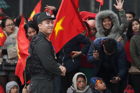 Hòa cùng niềm vui chiến thắng của đội tuyển Việt Nam với người hâm mộ - Ảnh: CHÍ CHINH