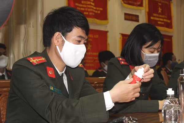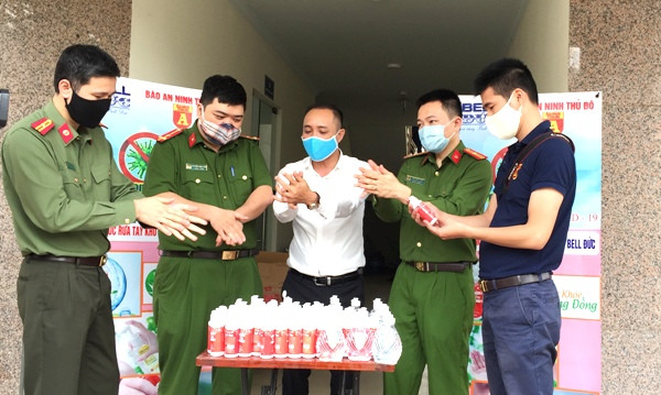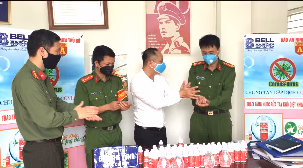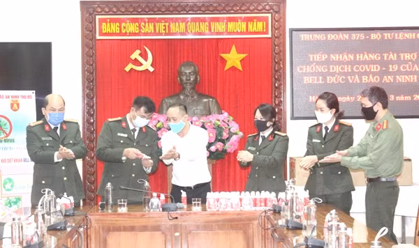 ANTD.VN - Đón nhận 600 chai nước rửa tay diệt khuẩn phục vụ công tác phòng, chống dịch của CBCS trong đơn vị sáng 26-3, Đại tá Doãn Văn Hòa, Trung đoàn Trưởng Trung đoàn 375 xúc động nói lời cảm ơn tới Thiếu tá Vũ Mạnh Hùng, Phó Tổng biên tập Báo ANTĐ cùng đại diện Công ty TNHH Bell Đức.