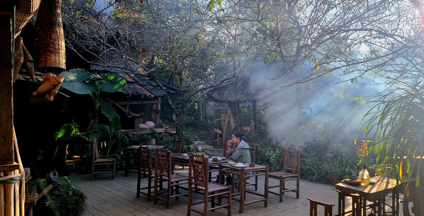 Qua thăm, A Trư trong nhà tất bật chạy ra đón khách, đôi ủng dưới chân vẫn bê bết bùn đất. Gãi đầu gãi tai cười, vợ chồng em vừa thu hoạch 4 tấn gừng. Hỏi bán được nhiều tiền không thì cười to bảo, họ trừ đầu trừ đuôi rồi, bán chả được bao nhiêu. Thế rồi sao làm “homestay”? - Tôi hỏi. A Trư lại cười cười khoe răng khểnh: “Thì anh A Chu bảo làm!”. Hóa ra, lần nào anh em gặp nhau, A Chu cũng đều “vận động”. Thế rồi vợ chồng quyết tâm đầu tư, nhà có một nửa, vay thêm một nửa. Hình hài “homestay” hiện lên ngày một rõ ràng hơn trên mảnh đất hơn 5.000m2. Mới đi vào hoạt động nên “em chưa biết quảng bá như nào” thi thoảng cũng có đoàn khách, khách Tây đến cũng không ngại, vì có điện thoại, trao đổi với nhau bằng Google dịch, thế là hiểu nhau.