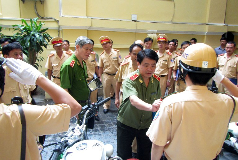 Thiếu tướng Nguyễn Đức Chung -Giám đốc CATP kiểm tra điều lệnh của CBCS