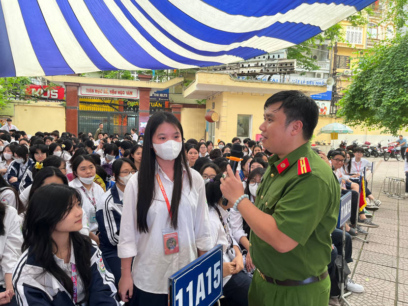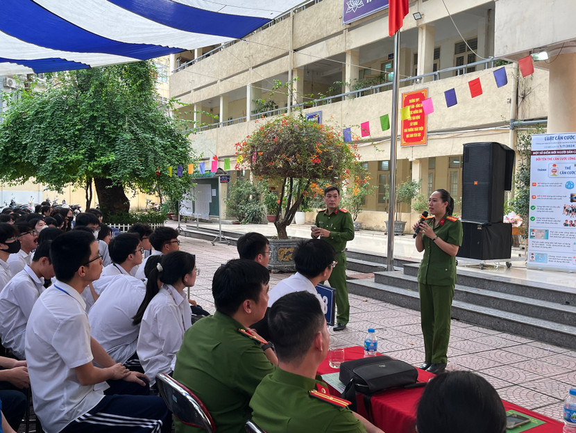 Đồng thời Báo cáo viên cũng tuyên truyền về Định danh điện tử, tiện ích của Định danh điện tử và ứng dụng VNeID đối với việc học tập và các hoạt động khác của học sinh. Ngoài ra, Công an quận cũng đã phổ biến, cảnh báo các thủ đoạn lợi dụng tài khoản Định danh điện tử để hoạt động vi phạm pháp luật của tội phạm và cách phòng ngừa đối với học sinh.