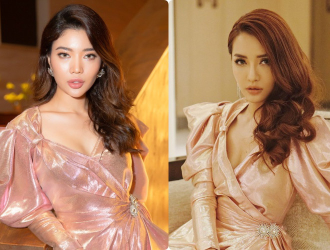 ANTD.VN - Bộ đầm với chất liệu bắt sáng mang tới hình ảnh kiêu sa, đài các và giúp Trang Lê khéo khoe đôi chân thon gợi cảm.