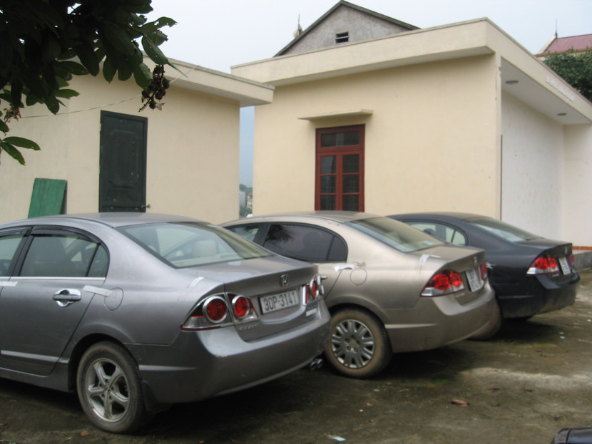 Những chiếc xe ô tô cầm cố là tang vật vụ án niêm phong tại trụ sở UBND xã Tiến Xuân