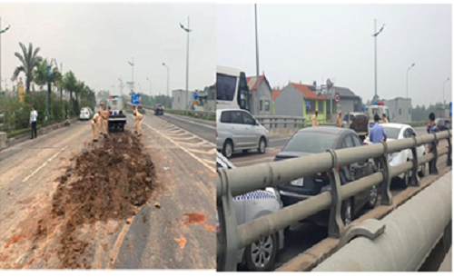 Nhận được tin báo, CAH Sóc Sơn đã phối hợp với lực lượng CSGT có mặt tổ chức phân luồng giao thông, đồng thời huy động lực lượng xúc đống đất lên xe thùng, thu dọn hiện trường. Đến khoảng 7h sáng, đống đất đã được dọn xong, các phương tiện có thể lưu thông an toàn.