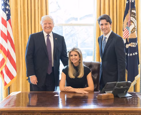 Bức ảnh được chính Ivanka Trump chia sẻ trên Twitter hôm 13-2, cùng với lời chú thích: “Một cuộc trao đổi tuyệt vời với 2 nhà lãnh đạo thế giới về tầm quan trọng của việc phụ nữ được góp tiếng nói trên bàn thảo luận”. Được biết, bức ảnh được chụp nhân dịp Tổng thống Canada đến Mỹ để bàn về thương mại, kinh tế và… phụ nữ.