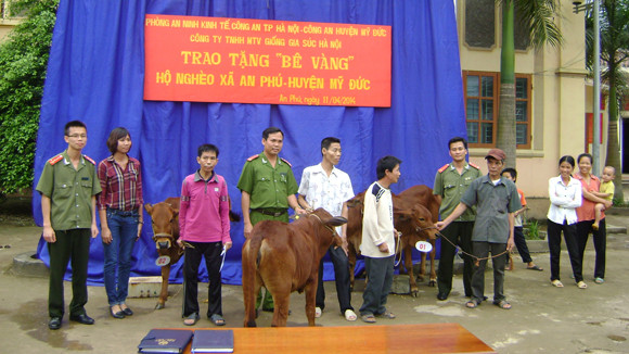 4 con bê giống có giá trị 80 triệu đồng được trích từ số tiền quyên góp của các đoàn viên, phụ nữ Phòng An ninh kinh tế, CAH Mỹ Đức và sự hỗ trợ của Công ty TNHH một thành viên Giống gia súc Hà Nội. Việc tặng bê vàng cho 4 hộ nghèo phát triển mô hình chăn nuôi này sẽ tiếp tục được nhân rộng đối với các hộ nông dân nghèo khác trong vùng, tiến tới xóa đói giảm nghèo và từng bước đưa kinh tế hộ gia đình phát triển, góp phần thúc đẩy kinh tế địa phương.