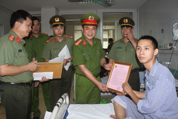 Chiều 3-7, thay mặt Ban Giám đốc CATP Hà Nội, Đại tá Nguyễn Thanh Tùng - Phó Giám đốc, Thủ trưởng Cơ quan Cảnh sát điều tra CATP Hà Nội đã đến Bệnh viện 19-8 thăm, động viên và trao Thư khen của Lãnh đạo Bộ Công an, Giấy khen của Giám đốc CATP Hà Nội tặng anh Phan Quốc Huy, người thanh niên dũng cảm, bị thương trong quá trình truy bắt đối tượng gây án tại hiệu vàng ở quận Nam Từ Liêm.