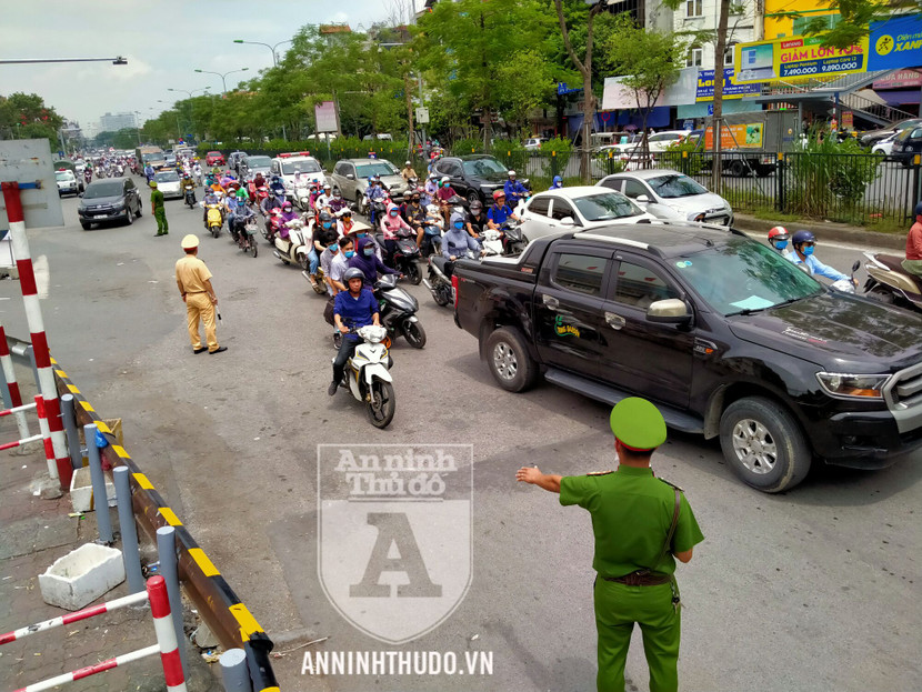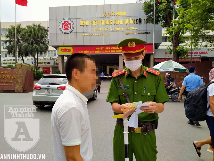 Cán bộ của Đội CSGT, TT (CAQ Hai Bà Trưng) phối hợp với cảnh sát giao thông để đảm bảo trật tự giao thông trước khu vực cổng bệnh viện