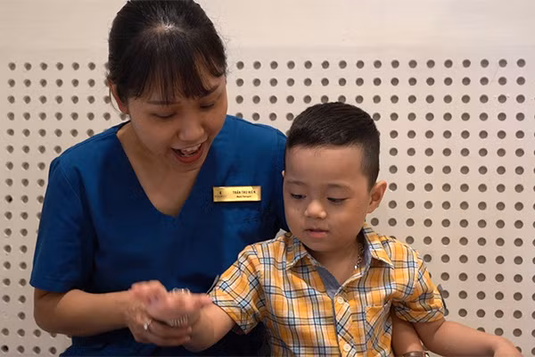 Trong lúc mệt mỏi và tuyệt vọng ấy, chị Xuân được giới thiệu ra Hà Nội đến Bệnh viện đa khoa quốc tế Vinmec Times City. Tại đây, qua kiểm tra, các bác sĩ đánh giá Nam đã bị rối loạn phổ tự kỷ ở mức rất nặng. Tất cả chỉ số phát triển từ vận động, nhận thức đến ngôn ngữ đều rất thấp.