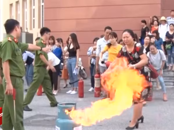 Cán bộ Cảnh sát PCCC đưa ra tình huống: “Khi chúng ta phát hiện chiếc quạt treo trên tường chập điện gây cháy nếu có bình chữa cháy chúng ta chỉ cần xịt vào đó là lửa sẽ tắt, nhưng hậu quả sẽ cháy lan nếu chúng ta biết muộn lại không có bình chữa cháy để dập lửa hoặc thiếu kỹ năng để lửa bùng phát lớn thì thành hiểm họa. Vậy kỹ năng và phương tiện là điều kiện không thể thiếu trong công tác PCCC”.