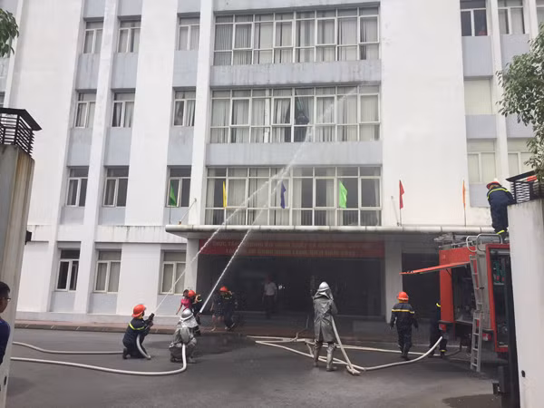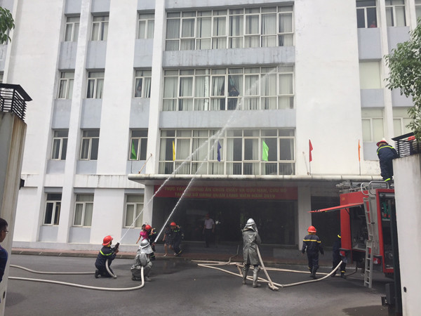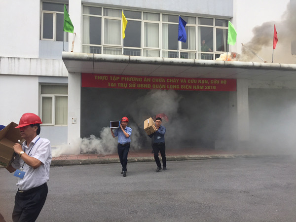 Tiếp đó, Đội PCCC cơ sở của UBND quận Long Biên đã phối hợp cùng Công an quận Long Biên tổ chức thực tập phương án chữa cháy, cứu nạn cứu hộ tại tòa nhà khu liên cơ quan thuộc UBND quận. Tình huống diễn tập được xây dựng sát với thực tế hoạt động tại tòa nhà, các lực lượng tham gia diễn tập đã triển khai đội hình chữa cháy, cứu nạn cứu hộ theo đúng kịch bản đề ra.