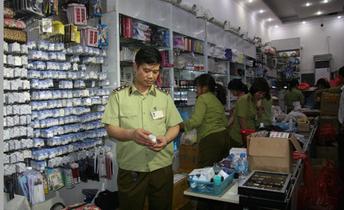 Cán bộ QLTT Hà Nội kiểm tra hàng hóa có dấu hiệu vi phạm