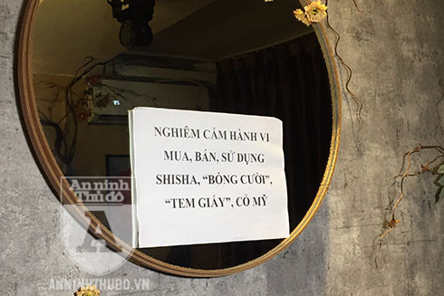 Điều đáng nói ở đây là, quán này có dán thông báo “Nghiêm cấm hành vi mua, bán, sử dụng Shisha, “bóng cười”, tem giấy, cỏ Mỹ”, nhưng khi kiểm tra hóa đơn thanh toán của khách đến đây, lực lượng chức năng phát hiện quán công khai bán “bóng cười”. Giá của mỗi quả “big ball” là 70.000 đồng/quả. Với khách mua “combo” 20 quả bóng sẽ được tính giá 1.099.000 đồng. Còn Shisha sẽ được bán với giá 90.000 đồng/bình.