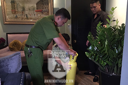 Còn tại quán Analog Coffe - Lounge, tổ công tác liên ngành phát hiện, bắt quả tang 10 người đang sử dụng "bóng cười", trong đó có một học sinh lớp 11 và một học sinh lớp 5