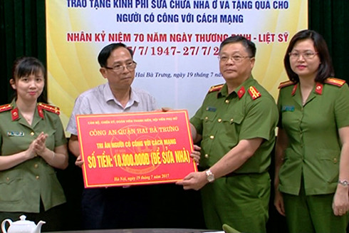 Nhân dịp này, CAQ Hai Bà Trưng đã trao tặng 20 suất quà đến thân nhân các liệt sỹ. Mỗi suất quà trị giá 500.000 đồng và trao tặng gia đình thân nhân liệt sỹ, thương bệnh binh có hoàn cảnh khó khăn, mỗi suất 10 triệu đồng để sửa chữa nhà cửa, giúp các gia đình đảm bảo cuộc sống tốt hơn.