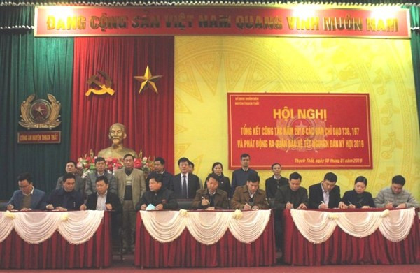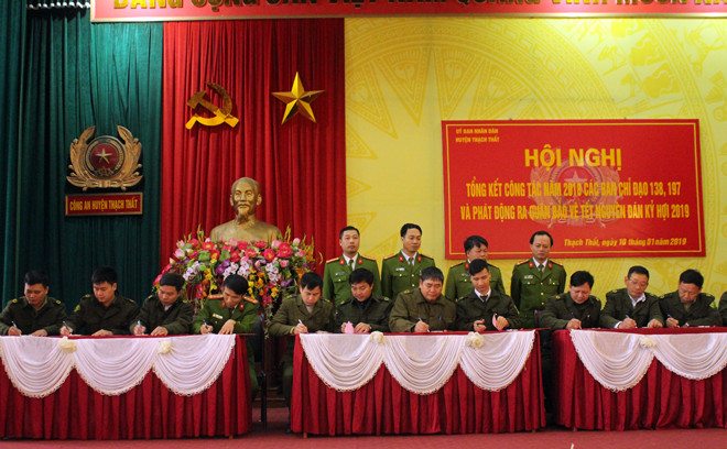 Trưởng Công an xã, thị trấn của huyện Thạch Thất tham gia ký kết đảm bảo ANTT, phòng chống, mua bán, vận chuyển, tàng trữ, sử dụng các loại pháo