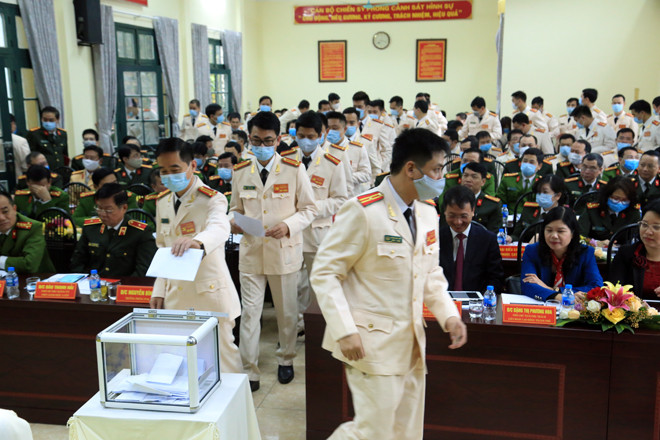 Các đại biểu tham gia bỏ phiếu bầu Ban Chấp hành Đảng bộ Phòng CSHS nhiệm kỳ 2020-2025