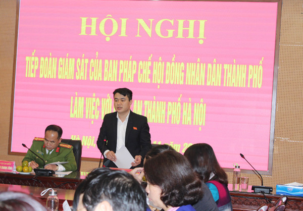 Ông Duy Hoàng Dương, Phó trưởng ban Pháp chế, Hội đồng nhân dân TP, Trưởng đoàn giám sát nêu yêu cầu kiểm tra với Công an thành phố Hà Nội