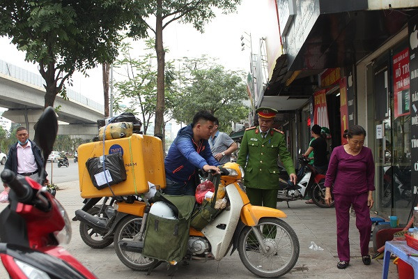 Ghi nhận của PV, vào sáng 27-3, lực lượng CAP Thượng Đình tổ chức tuần tra kiểm soát liên tục. CBCS đã đến cửa các hộ kinh doanh để nhắc nhở xe máy thẳng hàng đúng nơi quy định. Cùng với đó, thu giữ các biển quảng cáo, hàng quán lấn chiếm vỉa hè đã nhắc nhở nhiều lần vẫn tái phạm. Đặc biệt, lập biên bản cẩu phương tiện một ôtô đỗ trái nơi quy định.