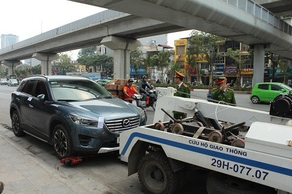 Cùng với đó, đẩy mạnh xử lý các điểm trông giữ phương tiện, các điểm, tụ điểm vi phạm kinh doanh lòng đường, chợ tạm, chợ "cóc" họp lấn chiếm. Đặc biệt, trên địa bàn quận Thanh Xuân tập trung nhiều khu đô thị, nhà chung cư thiếu chỗ để xe nên đã hình thành các bãi trông giữ xe trái phép lấn chiếm. Theo Trung tá Nguyễn Anh Sơn, Đội trưởng Đội CSGT-TT-CĐ, CAQ Thanh Xuân: "Đội CSGTTTCĐ phối hợp với các phường "đánh trúng" và xử lý dứt điểm vào các điểm "nóng" về trật tự đô thị như các bãi xe trái phép ở bãi xe trái phép khu nhà N3, Khu đô thị Trung Hòa - Nhân Chính, các cửa hàng chây ì vi phạm trật tự đô thị nhắc nhở nhiều lần vẫn tái vi phạm, các hàng quán bán đêm để xe và bày bán tràn lan ra vỉa hè, lòng đường. Không có vùng "cấm" trong việc xử lý các vi phạm lấn chiếm vỉa hè, lòng đường".