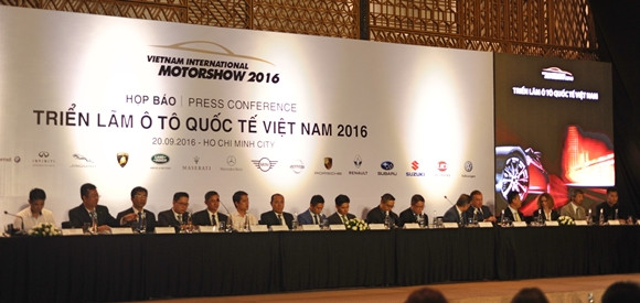 Ban tổ chức cùng các đại diện hãng xe trong buổi giới thiệu về Triển lãm Ô tô quốc tế 2016