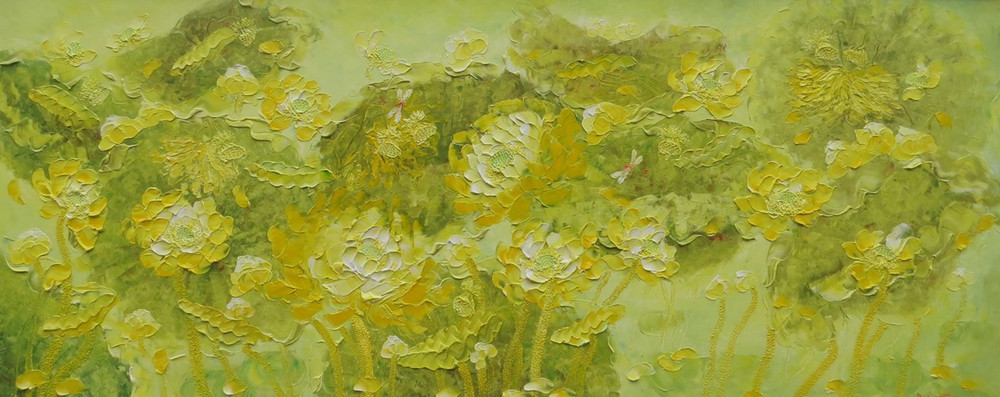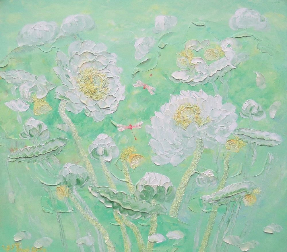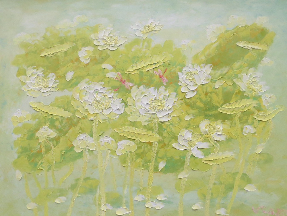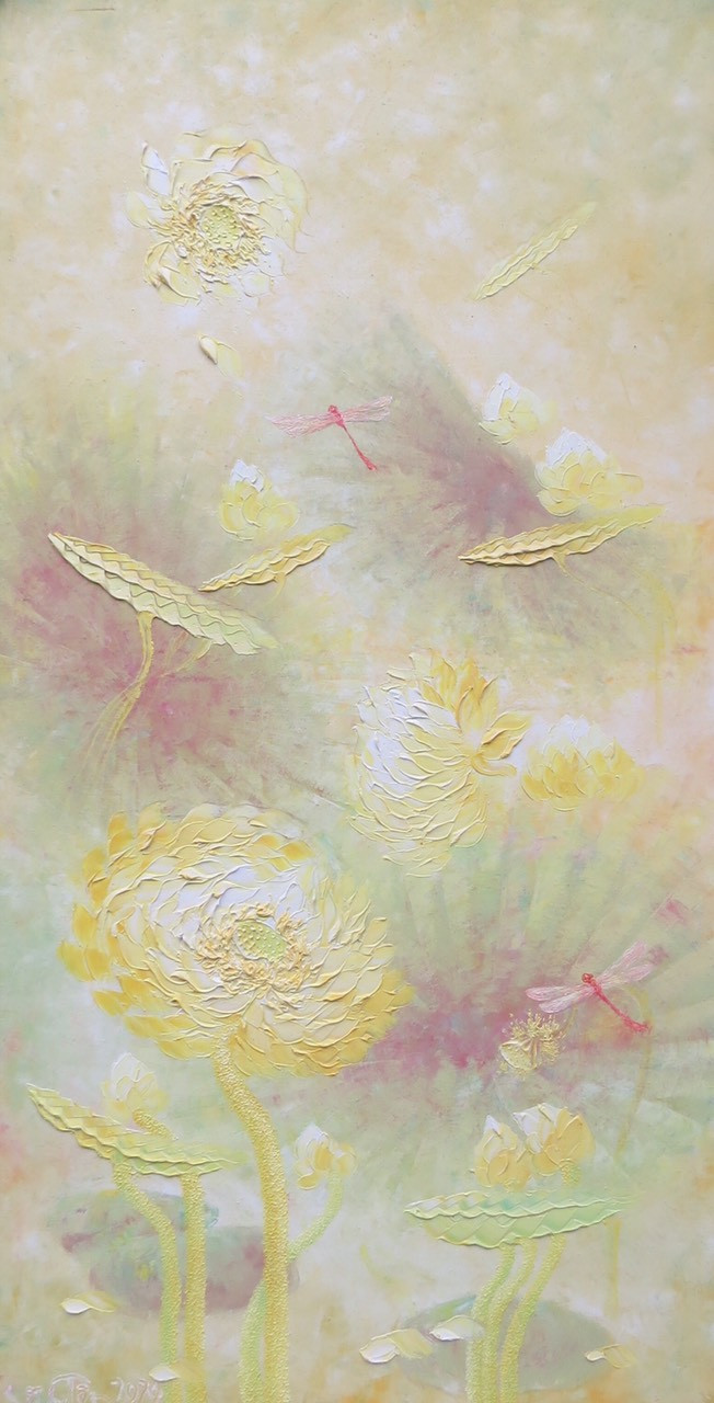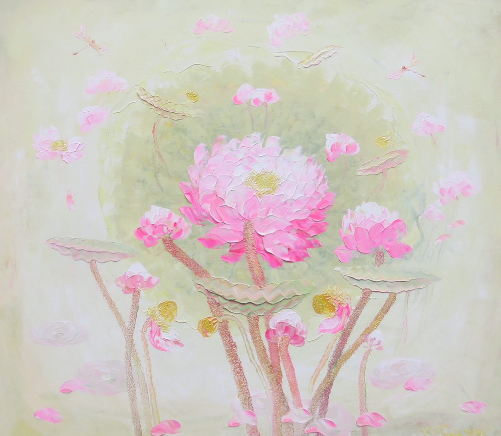 ANTD.VN - Không khai mạc rầm rộ mà thanh nhã, nhẹ nhàng như sen, Triển lãm tranh “Sen Thanh Tịnh” của họa sĩ Vũ Tuyên với 45 bức sơn dầu từ ngày 2-11 đến 7-11-2020 như một điểm hẹn tri kỷ vào cuối mùa thu Hà Nội tại Nhà triển lãm số 16 phố Ngô Quyền (quận Hoàn Kiếm Hà Nội). Mỗi thời khắc, mỗi tháng năm vẽ hoa sen đều là quá trình thiền định, tu luyện với họa sĩ Vũ Tuyên! Anh chia sẻ, khi vẽ hoa Sen năng lượng đất trời, con người như cùng tụ lại trên bức tranh. Người họa sĩ gửi vào đó đam mê, tình yêu và trăn trở trước những khổ đau, dịch bệnh, thiên tai... Sen Thanh Tịnh như tâm tưởng biết vượt qua những khó khăn, những tham, sân, si của đời thường. Ngắm tranh sen mà ngỡ dáng người…