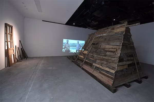 Ở một góc yên tĩnh khác, tác phẩm sắp đặt “6m vuông từ năm 79” với câu chuyện từ hiện thực của chính gia đình tác giả Phan Anh tái hiện câu chuyện về người bà, về gia đình như một lời nhắc nhở tới cội nguồn, về những nỗ lực mưu sinh trong cuộc sống vốn khắc nghiệt. Những khung cửa sờn màu, ngổn ngang chất chứa suy tư về sự “vật đổi sao dời” của thời gian, không gian và cả cuộc đời con người.