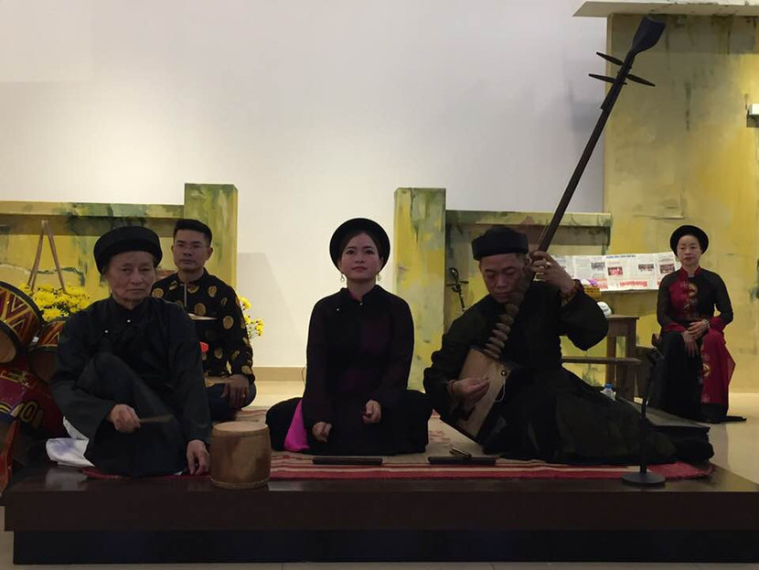 Tiết mục ca trù "Hồ Gươm" do Nghệ nhân ưu tú Ngọc Hân thể hiện tại không gian trưng bày