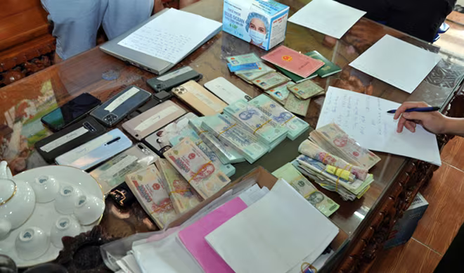 Tang vật liên quan đến đường dây đánh bạc do Nguyễn Quang Vinh cầm đầu