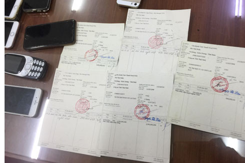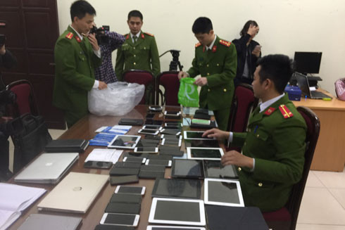 Lực lượng Công an kiểm tra tang vật, thiết bị liênquan đến đường dây đánh bạc