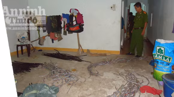 Hơn 100 mét cáp viễn thông vừa trộm giấu tại phòng giữa của nhà đối tượng Viên