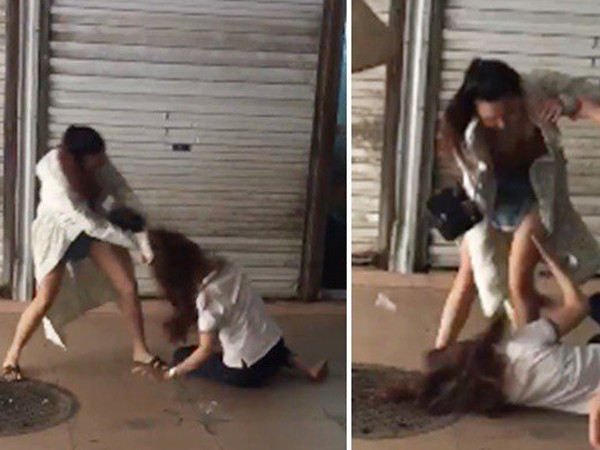 Hình ảnh cắt từ clip đánh ghen tại khu vực chợ Ninh Cơ