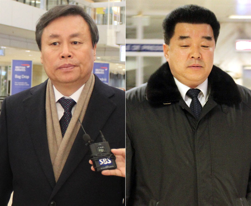 Chủ tịch Ủy ban Olympic Triều Tiên Kim Il Guk (phải) và Bộ trưởng Thể thao Hàn Quốc Do Jong-hwan (trái) tới Geneva, Thụy Sĩ để tham gia cuộc họp của Ủy ban Olympic Quốc tế (IOC)