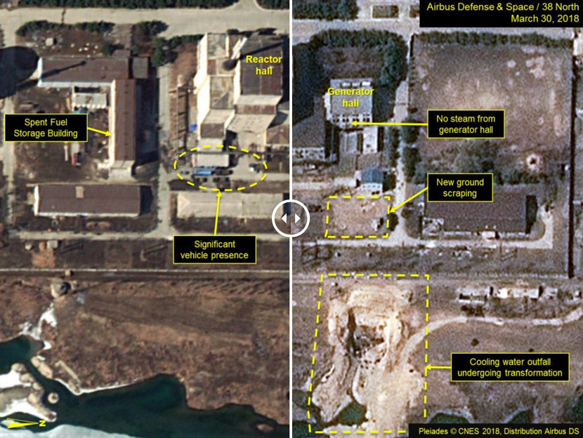 Trong hình ảnh chụp từ vệ tinh thương mại mới nhất hôm 30/3 vừa qua, không trông thấy rõ khói từ buồng máy của lò phản ứng sản xuất plutoni 5 MW tại tổ hợp hạt nhân Yongbyon. Hình ảnh vệ tinh cũng cho thấy các xe tải gần lò phản ứng, có thể là để tiến hành bảo dưỡng, sửa chữa hay vận chuyển các thanh nhiên liệu đã sử dụng tới cơ sở tái chế.