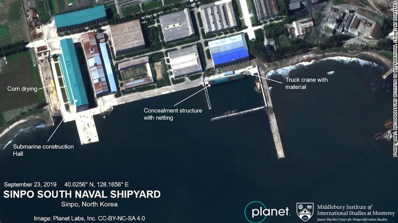 Những bức ảnh chụp bởi viện nghiên cứu Middlebury có trụ sở ở Mỹ cho thấy Triều Tiên dường như đang đạt được tiến bộ với tàu ngầm chế tạo tại xưởng đóng tàu hải quân Sinpo, nằm ở khu vực trung tâm đường bờ biển của nước này.