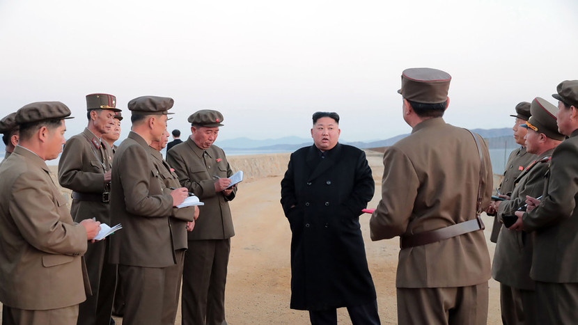 Hãng tin nhà nước Triều Tiên KCNA đăng tải bức ảnh duy nhất cho thấy ông Kim Jong-un đứng gần bờ biển với các sĩ quan quân đội khác nhưng không có hình ảnh loại vũ khí mới.