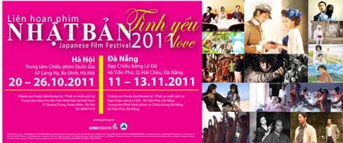 Từ ngày 20-26/11, tại Hà Nội, và từ 11-13/11 tại Đà Nẵng sẽ diễn ra sự kiện Liên hoan phim Nhật Bản 2011. Với chủ đề chính là "Tình yêu", 8 bộ phim là 8 chuyện tình khác nhau sẽ được trình chiếu với phụ đề tiếng Anh và tiếng Việt.