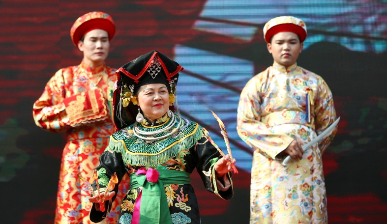Một trong những điểm nhấn đặc biệt của lễ hội là người dân và du khách thập phương đã được “mục sở thị” màn trình diễn nghi lễ thực hành tín ngưỡng thờ Tứ Phủ của đạo Mẫu Việt Nam. Đại diện Ban tổ chức cho biết, các giá hầu được lựa chọn trình diễn lần này trên cơ sở phù hợp với không gian của lễ hội và của các bản hội thuộc ba miền Bắc, Trung, Nam.