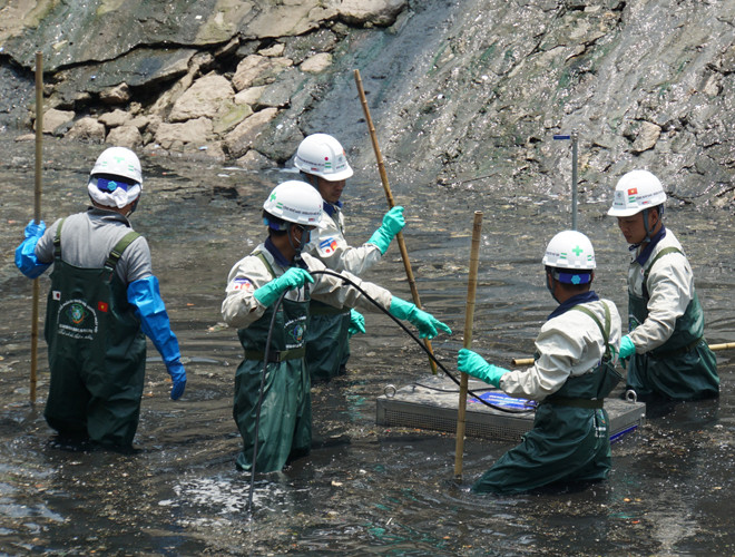 ANTD.VN - Các chuyên gia Nhật Bản và kỹ sư của Công ty CP Cải thiện môi trường Nhật Việt (JVE) đã lắp đặt khu trình diễn xử lý nước sông Tô Lịch (Hà Nội) bằng công nghệ Nano - Bioreactor.