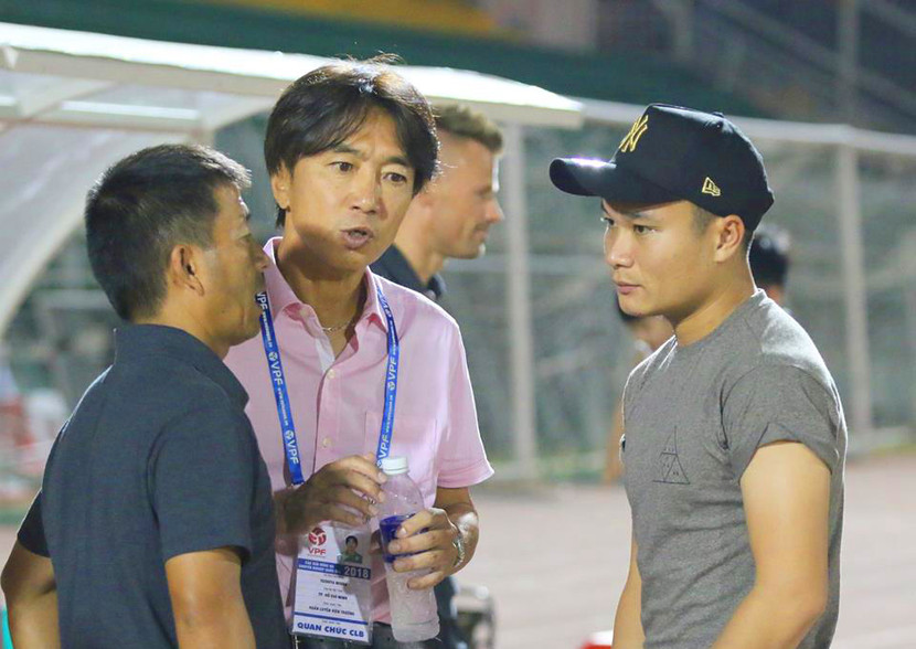Phi Sơn (phải) chấn thương dây chằng khiến đội bóng của HLV Miura gặp khó