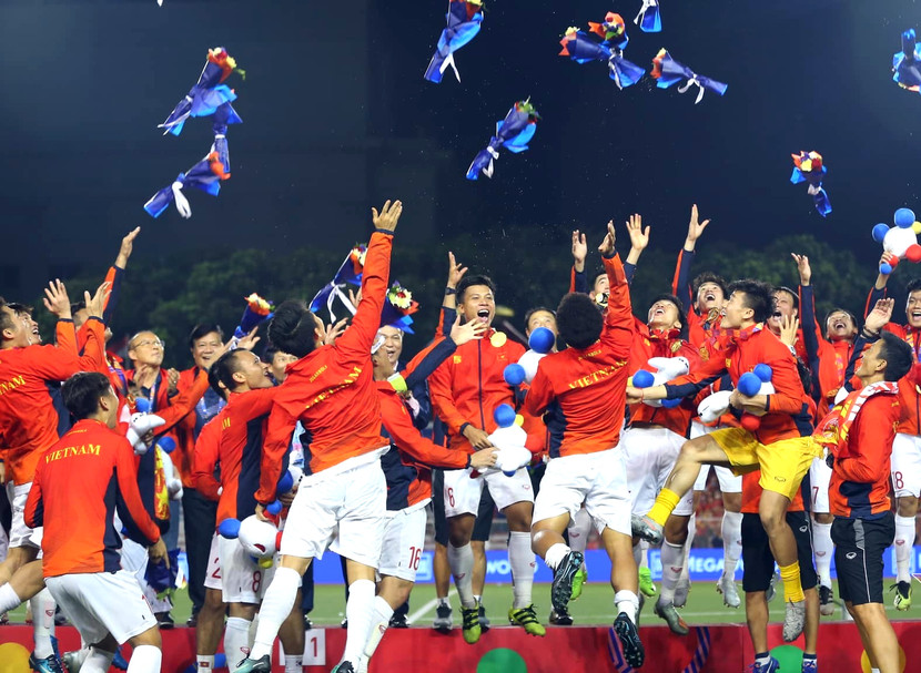 U22 Việt Nam ăn mừng tấm HCV SEA Games lịch sử