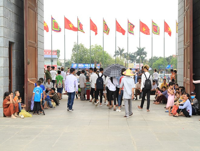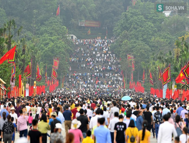 ANTD.VN -Chương trình Giỗ tổ Hùng Vương - Lễ hội Đền Hùng năm 2019 do tỉnh Phú Thọ chủ trì với sự tham gia góp giỗ của 3 tỉnh: Cần Thơ, Nghệ An và Sơn La, được tổ chức trong 3 ngày (từ 13-4 tới 15-4, tức ngày 8-3 tới 10-3 âm lịch) tại Khu Di tích lịch sử Đền Hùng, TP. Việt Trì và các xã, phường lân cận. Hàng vạn du khách thập phương đổ về Đền Hùng đi lễ dẫn tới hiện tượng chen lấn, ai nấy đều trở nên "vật vã" giữa thời tiết khá mát tại Đền Hùng.