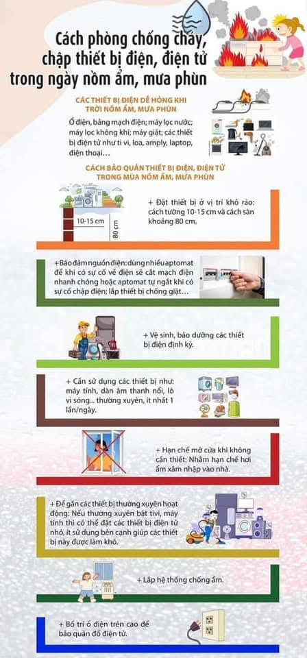 Nhiều vụ cháy xảy ra vào mùa nồm, ẩm ướt do thiết bị sấy quần áo, máy hút ẩm sử dụng không đúng cách. Nhiều người hay phụ thuộc và tin vào máy móc, thiết bị tự động, nhưng do sử dụng sai cách như để máy chạy quá lâu, dẫn đến quá tải hoặc để các chất liệu chăn, vải bông sợi gần máy dẫn đến khi máy chạy quá tải sinh nóng, chập cháy thành hoả hoạn.