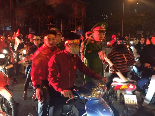Trong đêm ăn mừng chiến thắng đội tuyển Việt Nam của người hâm mộ, tuyệt đối không xảy ra đua xe, cổ vũ đua xe trái phép. Đối với những cổ động viên có biểu hiện quá khích, tiềm ẩn nguy cơ xảy ra tai nạn hoặc nguy hiểm khi tham gia giao thông, đều được các tổ tuần tra của CSCĐ nhắc nhở nhẹ nhàng. Có lẽ trong niềm vui mừng phấn khích tột độ của chiến thắng lịch sử sau 10 năm chờ đợi ấy, người hâm mộ, người tham gia giao thông dường như ý thức hơn về sự an toàn, về những lời nhắc nhở của lực lượng chức năng, chấp hành nghiêm các yêu cầu của CSGT, CSCĐ.